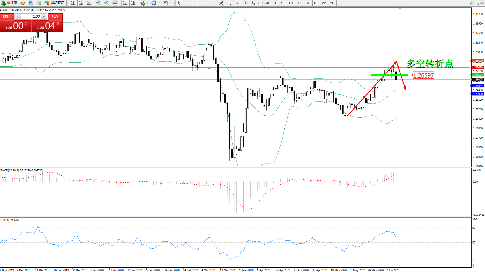 交易策略:1.26597下方看跌,目标1.25044、1.23900