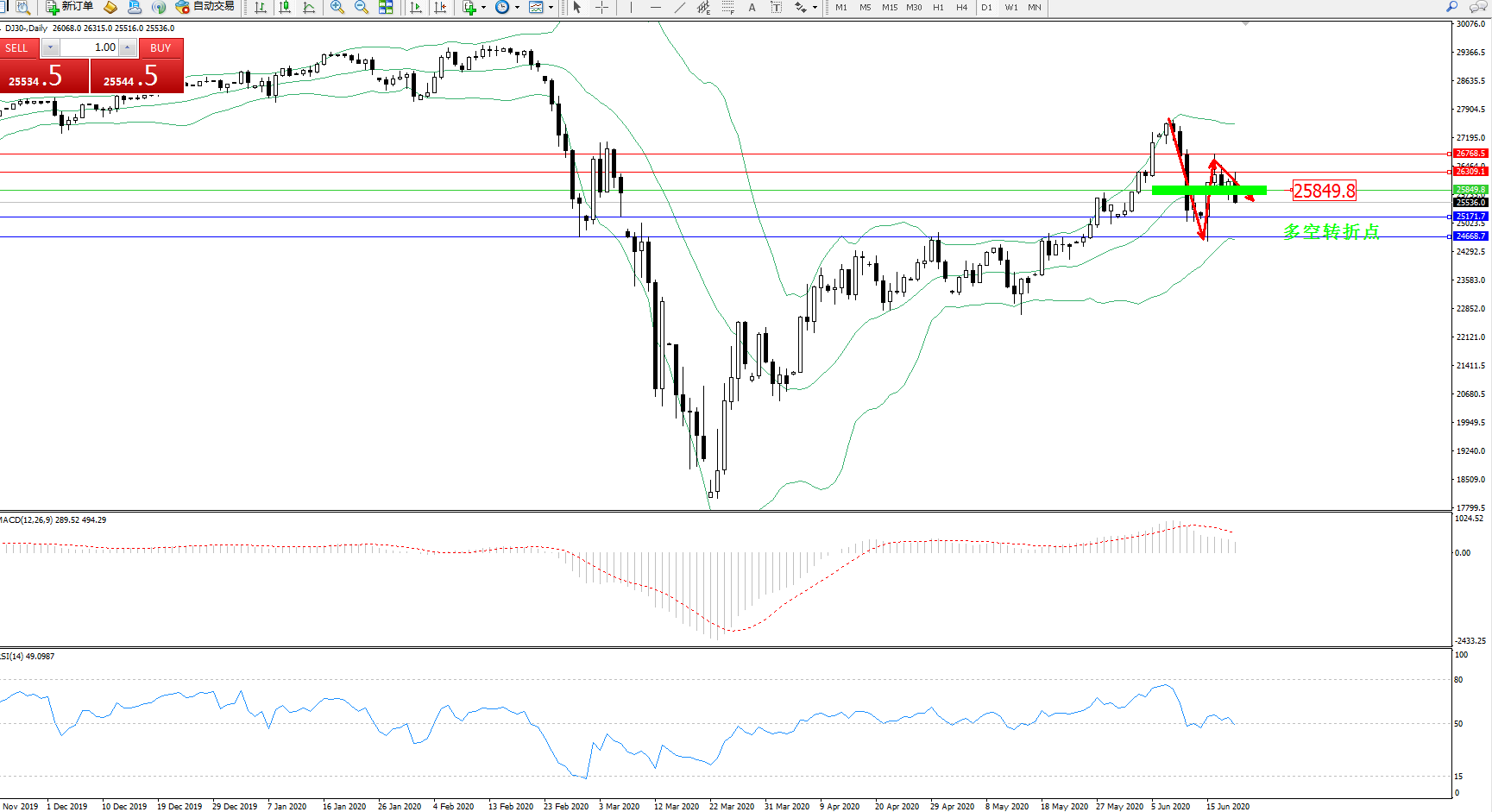 道琼斯指数6月19日(周五)收盘下跌207.10点,跌幅0.79%,报25873.04点。美股三大指数收盘涨跌不一,投资者对美国各州能以多快速度解除防疫封锁感到了更大不确定。周五是所谓的“四巫聚首”日,多只期权到期,市场波动剧烈。市场发现令人担忧的迹象,这是第一波疫情的延续,并不是出现第二波疫情。第二波冠状病毒感染的担忧增加了对避险资产的需求。美国许多州的新增冠状病毒感染病例上升,成为本周市场的焦点,人们担心全球将重新进入封锁状态。鲍威尔周五在由克利夫兰联储银行举办的网络论坛中表示:“我们将为经济从疫情中复苏而努力,但这将需要时间和精力。”鲍威尔指出,新冠病毒大流行对许多已经受到重创的地区造成了不成比例的影响,给那些最无力承受的群体带来了更大的负担。