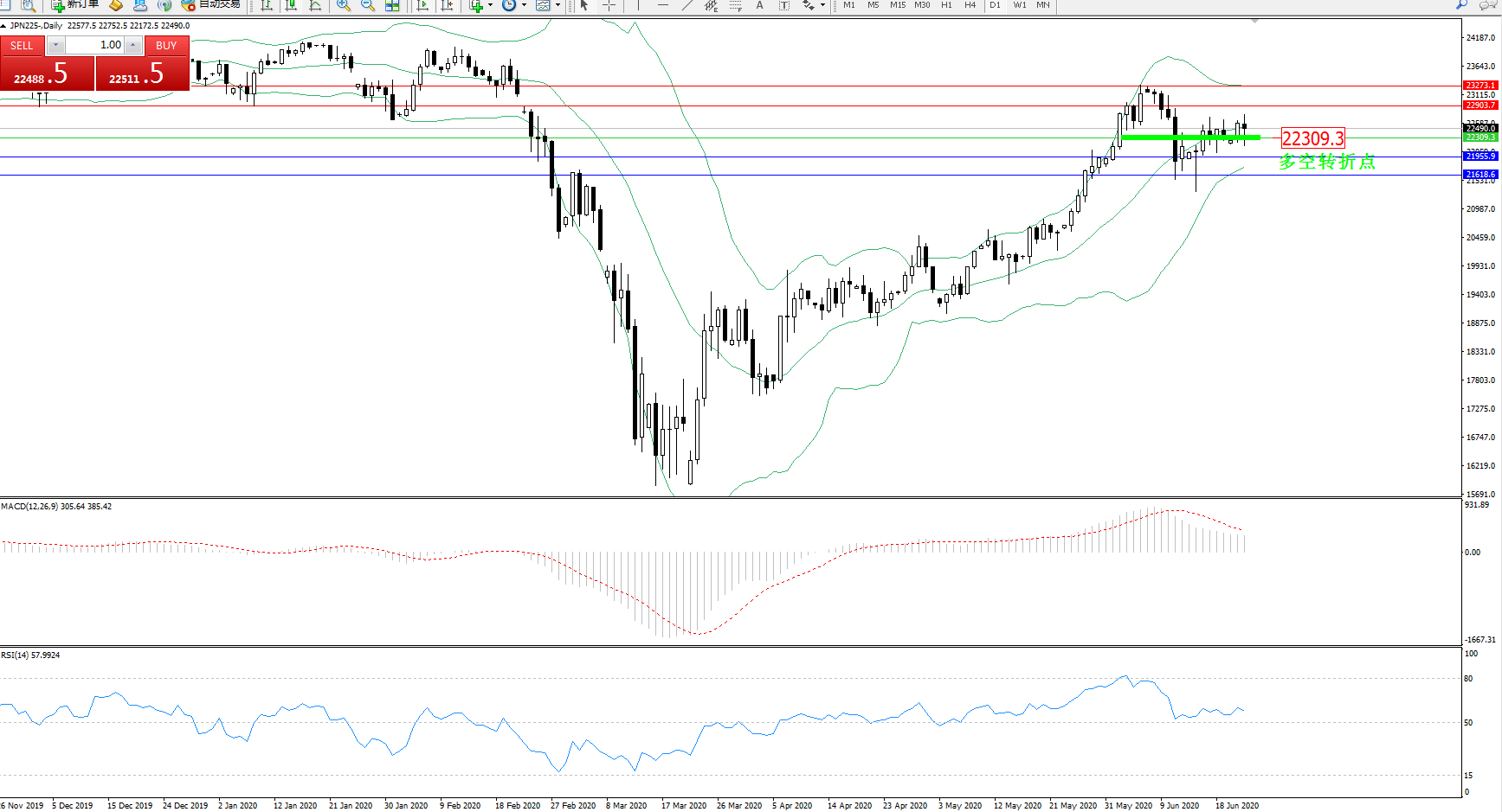 日经225指数6月23日(周二)收盘上涨99.73点,涨幅0.44%,报22537.00点。全球市场情绪在短暂受到贸易前景风波冲击后,重新返回原有轨道,亚洲股市整体走高,投资者仍更倾向于押注全球经济在社会公众活动重启后快速复苏,并淡化了面对疫情“第二波”的顾虑,因此避险货币首当其冲地继续遭到抛售。日本首相安倍晋三领导的执政党自民党希望将东京打造成一个欢迎外国专业人士的全球金融中心。自民党的政策研究委员会在文件中称,鉴于亚洲当前的地缘政治局势,日本应充分借助自身的民主和法规等优势,来打造一个国际金融中心。文件称,公共和私营领域应合作以吸引外国专业人士,并通过学校和医疗等服务建立支持体系。