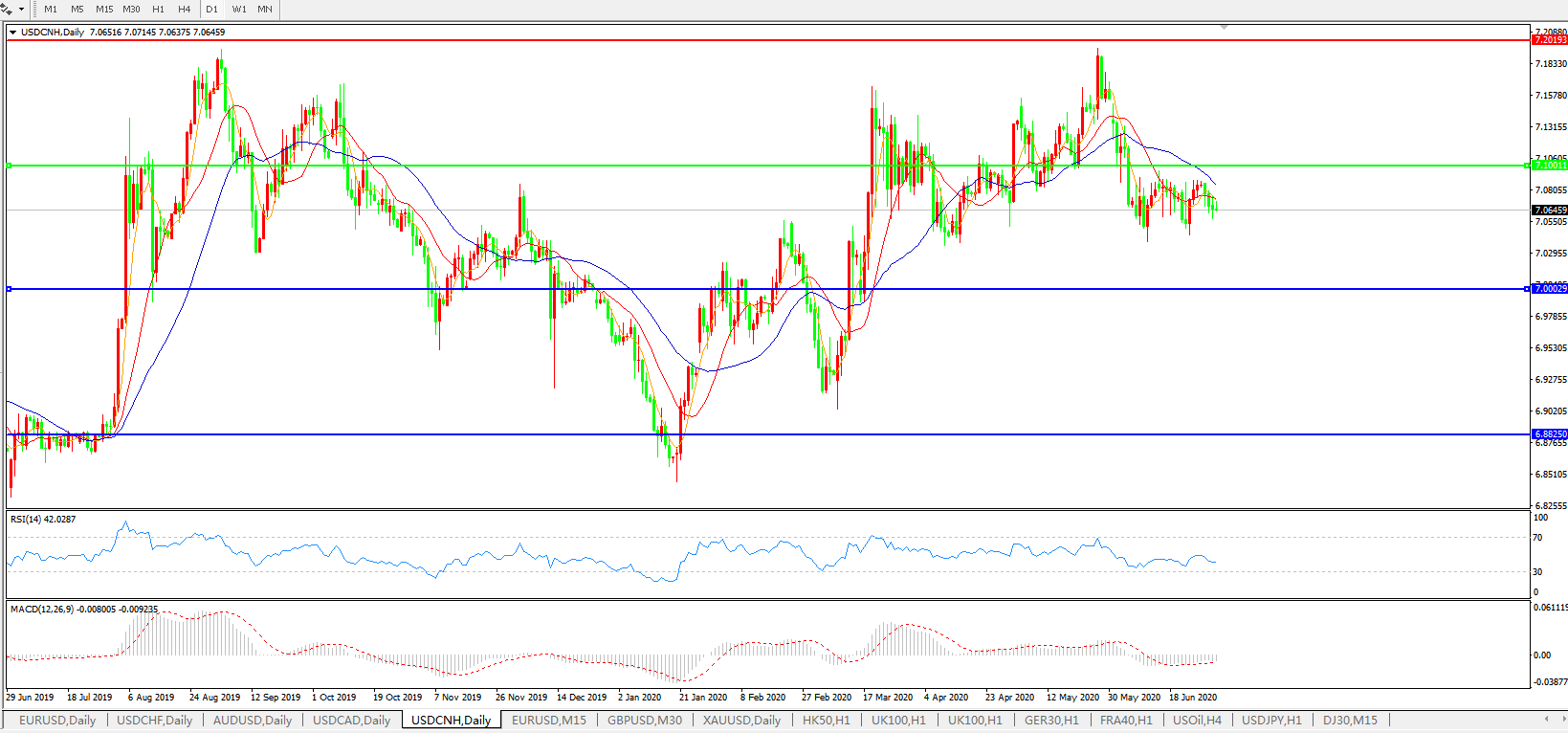 交易策略: 在7.1000之下,看跌,目标价位为7.0000,然后为6.8820。