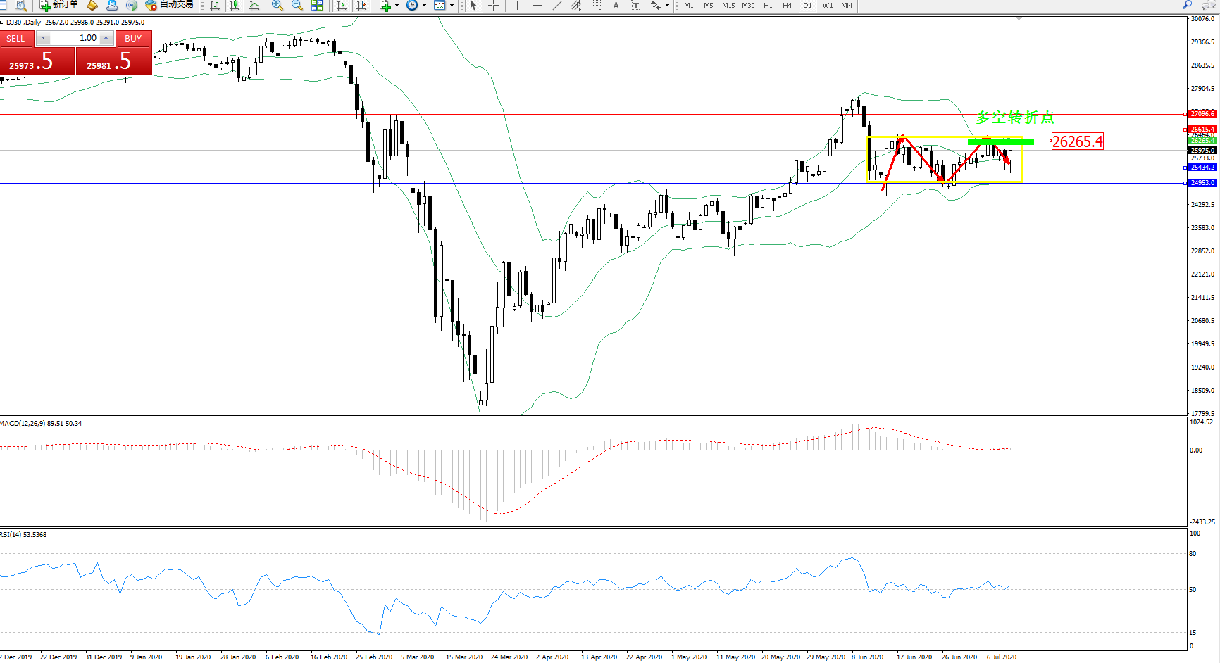 技术点评:长时间处于矩形整理震荡平移中,布林带指标波幅空间逐渐收窄后持续纠结于中上轨区间平移,关注布林带指标上轨附近节点附近,该位正是关键转折点压制附近,MACD指标长时间纠结于0轴线附近持续整理平移中,RSI指标处于50均衡线附近维持整理中;