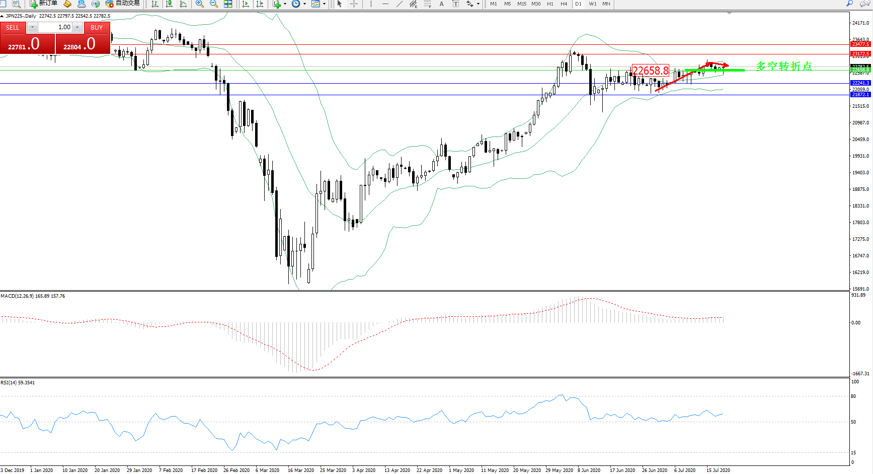 日经225指数7月20日(周一)收盘上涨3.58点,涨幅0.02%,报22700.00点。日本央行会议纪要:一位委员认为,实施的措施的预期效果正在扩大。日本的经济最近显示出了触底反弹的迹象。政策框架可适应各种情况的发展。问题可能从流动性转移到偿付能力方面了。日本央行的基本职能是提供流动性。经济复苏的延迟可能使企业的财务状况恶化,会加剧对金融系统风险的担忧。需要更仔细地考虑更多宽松举措。大部分委员认为,就目前而言,考察迄今采取的一系列宽松措施的效果是十分重要的。如果破产和停业的企业数量增加,日本可能再次陷入通缩。日本央行必须比以前更仔细地考虑政策应对措施,同时也要注意副作用,这样经济恶化才不会影响金融体系的稳定。日本央行与政府的合作很重要,合作的同时也要明确各自的角色。当政策重点从抗击疫情转向促进经济复苏时,应重新审视当前货币政策的刺激效果。委员们一致认为,由于国内外经济的高度不确定性,市场仍处于紧张状态。