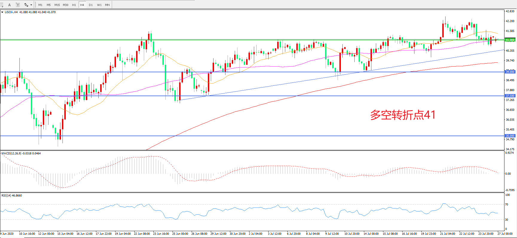 交易策略:在41.00之上看涨,目标43.50         47.50