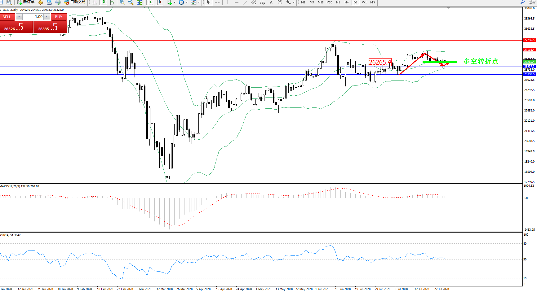 道琼斯指数7月31日(周五)收盘上涨114.70点,涨幅0.44%,报26428.32点。美国股市走高,科技股飙升,有关白宫和美国民主党计划讨论新刺激计划的消息给股市带来提振。苹果、亚马逊等科技巨头的强劲业绩。股市周五波动非常剧烈,有关经济反弹停滞的迹象可能使股市难以获得进一步的上涨动能。尽管科技股表现出韧性,周五公布的数据显示,美国经通胀调整后的消费者支出已脱离4月低位,但仍低于疫情爆发前的水平,数据公布后,美元基本守住涨幅,随着交易的展开,美元走强。美元本月进入了一轮非常严重的跌势,利率不断下降,这使得美元作为一种收益投资的吸引力大大降低,同时市场也开始意识到美元的政治风险。
