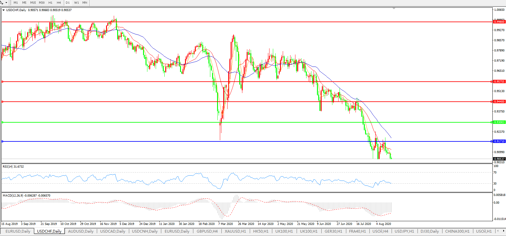 美元兑瑞郎USDCHF    日线图: