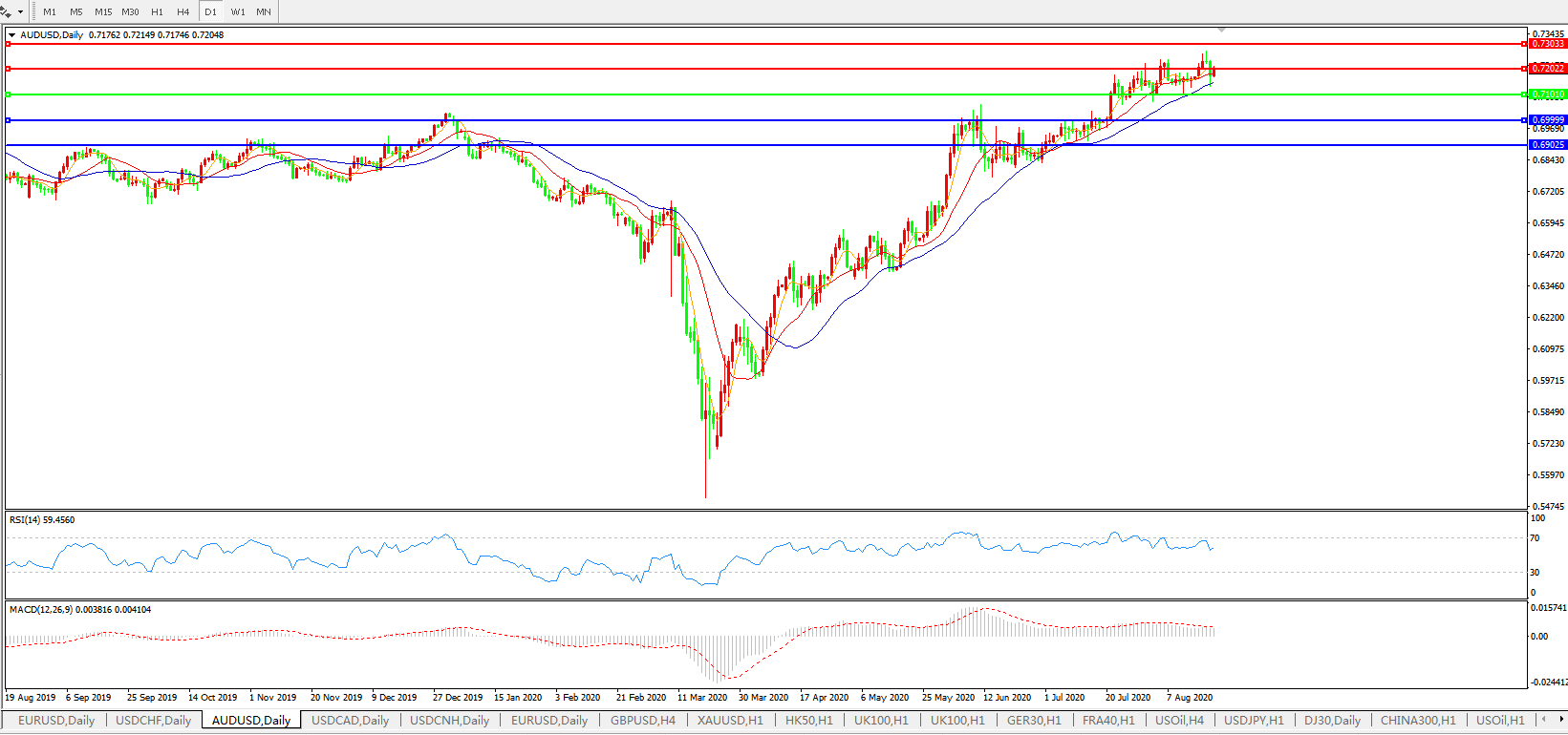 交易策略:0.7100上方看涨,目标0.7200、0.7300
