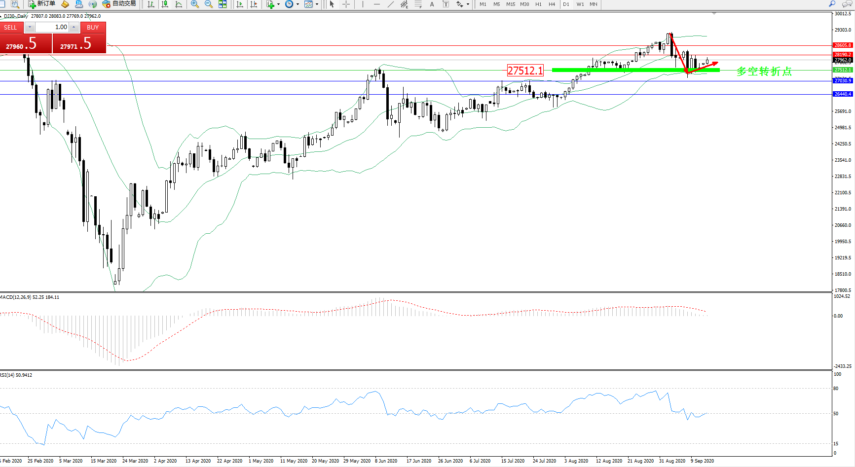道琼斯指数9月14日(周一)收盘上涨327.70点,涨幅1.18%,报27993.33点。美股三大指数集体收涨,美国股市连续第二天走高,市场涌现一系列并购交易活动,迹象显示新冠疫苗研发取得进展。受对冠状病毒疫苗的乐观情绪以及股市上涨影响,股市对冠状病毒疫苗研发寄予乐观期待,但人们预计11月美国总统大选之前市场还会出现更多动荡,美元指数连续第二个交易日下跌,美联储本周的会议将是鲍威尔公布政策调整后的首次会议。美联储加大对通胀的容忍,实际上承诺将在更长时间内维持低利率。“更新后的‘点阵图’料将强化这一信息,即目前的近零利率政策立场在2023年之前都是合适的,”这一情境预测对美元不利。
