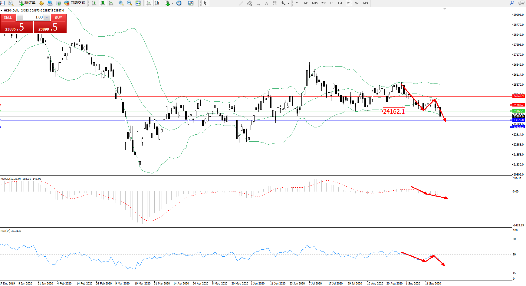香港恒生指数9月21日(周一)收盘下跌504.72点,跌幅2.06%,报23950.69点;港股主要指数全日呈下跌走势,恒指尾盘跌幅扩大至超2%,失守24000点,为6月15日以来首次。恒生科技指数跌2.39%。中资券商股板块高开低走,国联证券逆势收涨近36%,盘初一度暴涨75%;惟军工股等少数板块走强,中船防务逆势大涨9.5%;卷入“庞氏骗局”丑闻,汇丰控股跌超5%,股价创11年新低。今日南下资金逆势净流入26.6亿港元,大市成交额为1149亿港元。字节跳动在避免了禁令的同时,保留了TikTok在美业务。与此同时,微信也赢得了法院暂停执行命令的禁令。请问中方对此有何看法?汪文斌表示,我们不对企业的具体商业行为发表评论。作为原则,我愿意重申,中方敦促美方尊重市场经济和公平竞争原则,遵守国际经贸规则,停止将正常经贸合作政治化,为外国企业在美投资经营提供开放、公平、公正、非歧视的营商环境。