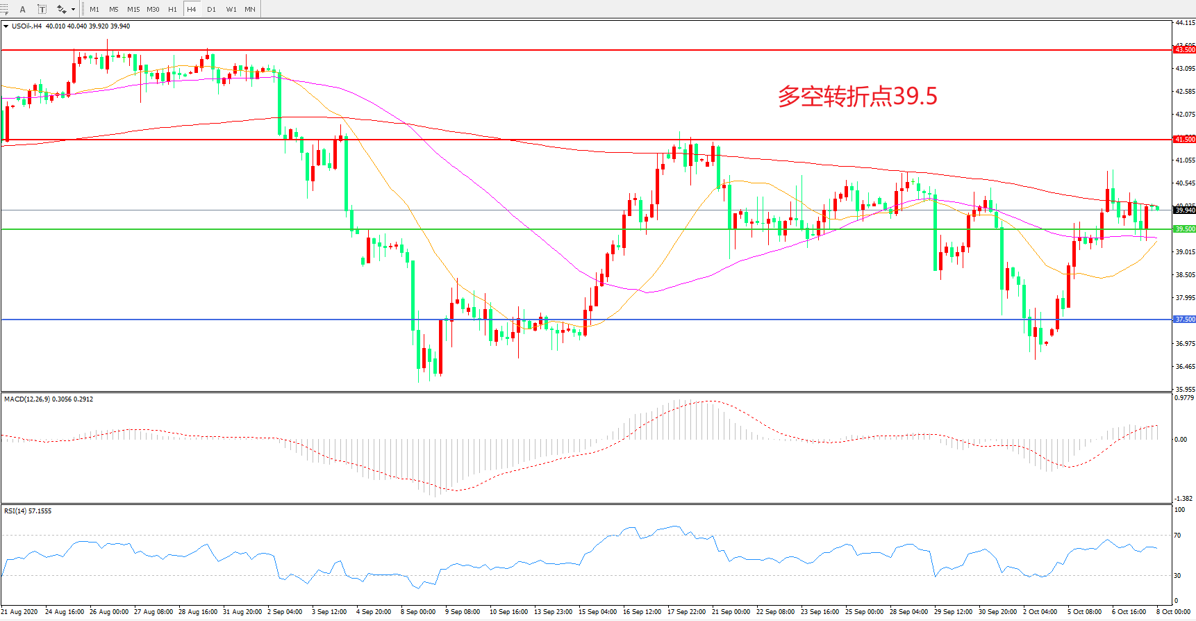 交易策略:在39.50之上看涨,目标41.50 43.50