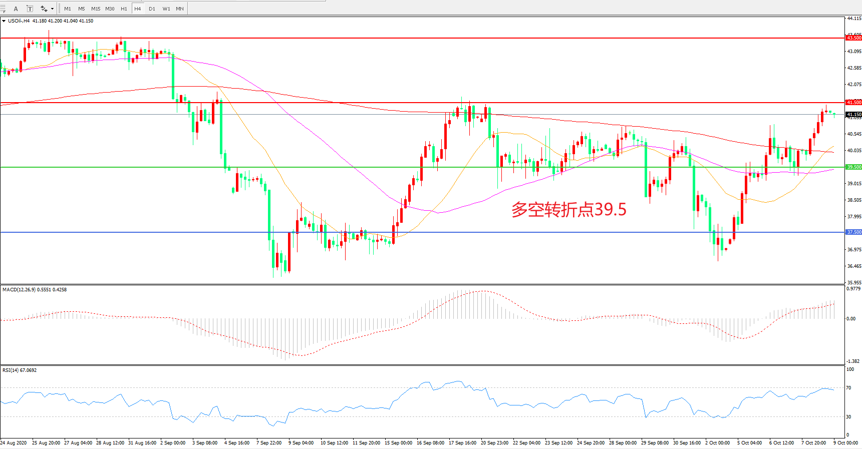 周四(10月8日),随着飓风“德尔塔”正向墨西哥湾西北移动,气候因素逐渐主导市场,墨西哥湾80%以上的原油产量将被关闭,美国WTI原油收到提振,大幅上行后收报41.07美元/盎司。与此同时,挪威石油工人罢工愈演愈烈,运营商预计,罢工行动可能会使西欧最大产油国油气产量减少四分之一,这都为油价上涨提供了支撑。