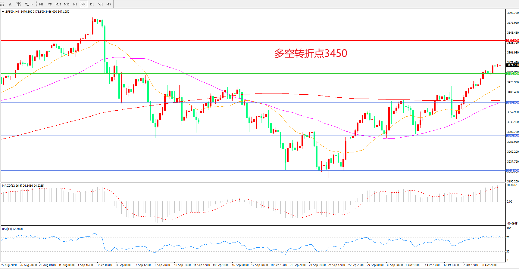 交易策略:在3450.00之上看涨,目标3530.00         3620.00