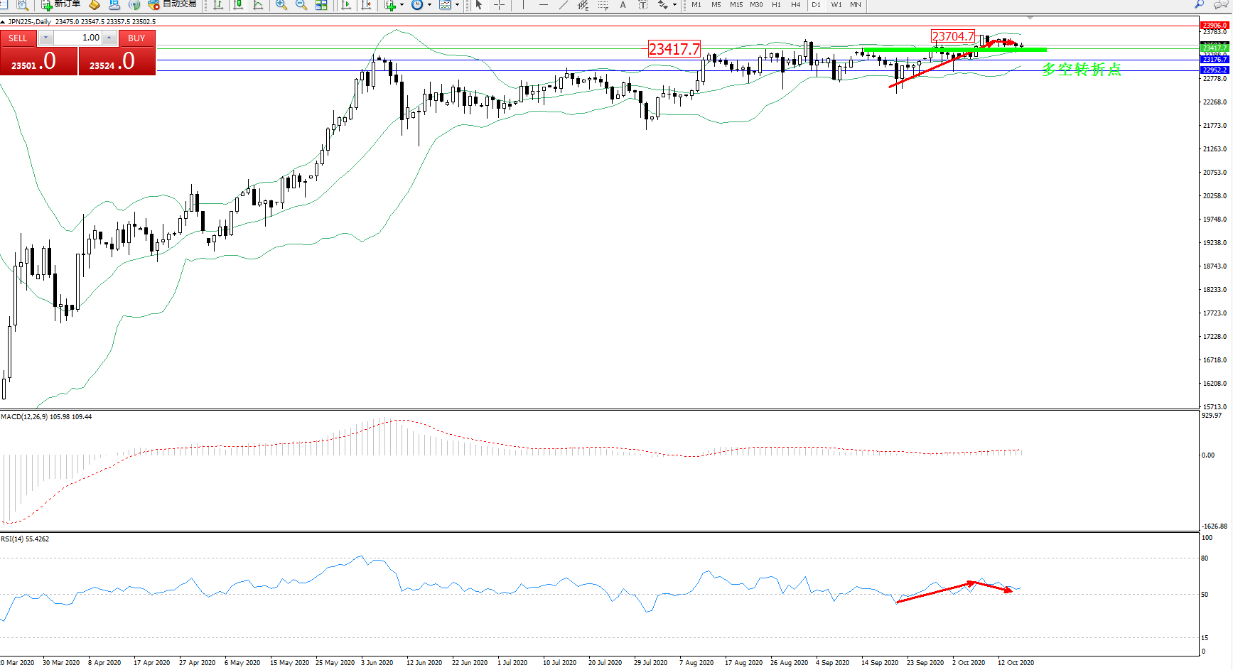 日经225指数10月16日(周五)收盘下跌84.23点,跌幅0.36%,报23423.00点。日本内阁官房长官加藤胜信:如果证明安全有效,政府会批准使用阿维根。日本经济委员会将讨论经济增长战略和政策改革的具体细节。日本首相菅义伟:我们将继续努力平衡经济和疫情防控。希望再次看到入境旅游。作为首相,我最重要的职责是让人民过上正常的生活。我们将继续为企业和人民提供经济援助。必须把控制新冠病毒和经济活动结合起来。计划每天保证进行20万次新冠肺炎病毒检测。我想确保奥运会能在明年举行。经济仍然处于严峻的状态。尽管开展了旅游活动,只要采取适当措施加以控制,感染新冠肺炎的风险很低。我们正与国际奥委会和奥组委密切合作,以确保东京奥运会的举行。希望在未来五年内看到集成数字系统遍及所有城市。希望明年成立数字机构来实现这一目标。想让数字化成为商业的一个转折点。希望在年底前确定数字代理的方向。日本70%的消费来自国内各地区,我想重点振兴地区的发展。希望通过加强旅游和农业政策来实现这一目标。到2030年将保持6000万游客的目标。到2025年将实现农产品出口2万亿日元的目标。增长委员会将讨论弹性供应链。增长委员会将在年底提交中期报告。首相指示在年底前制定一份增长战略委员会的中期报告。