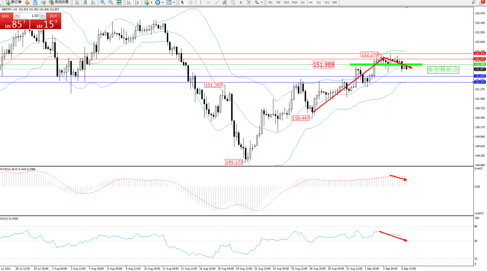 多空转折点:151.989