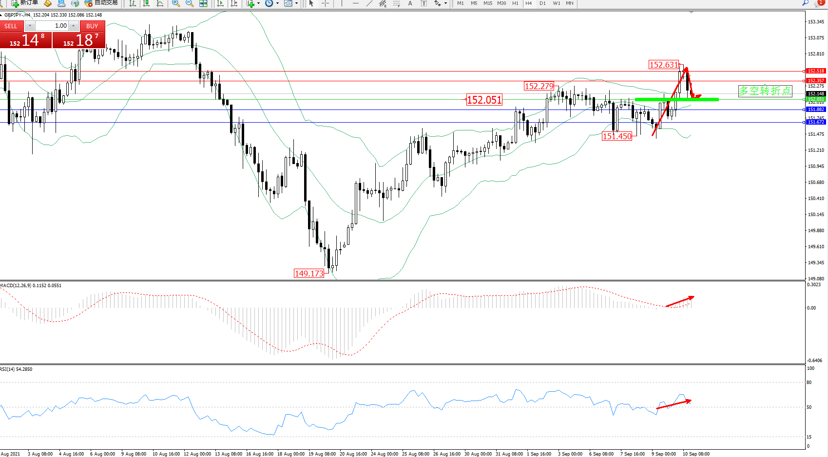 技术点评:多头动力持续震荡上扬,突破布林带指标上轨附近节点抵达152.631位置后遇阻回撤,短期多头动力开始拉升上移,或维持在中上轨区间持续震荡,布林带指标呈收口走势中,MACD指标处于0轴线上方弱势徘徊,RSI指标处于50均衡线上方喘息震荡中;