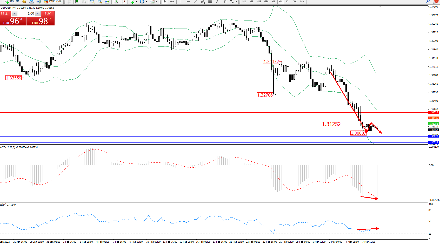 交易策略:1.31252下方看跌,目标1.30628、1.30329