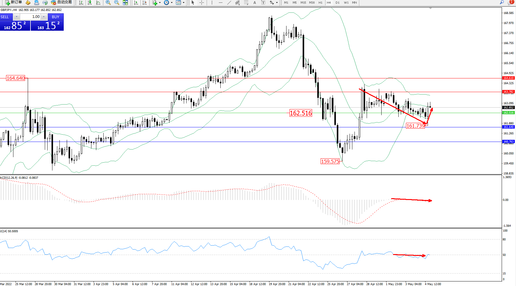 技术点评:长时间维持在布林带指标通道中上轨区间持续窄幅震荡平移,空头动力弱势缓慢下行,跌破布林带指标下轨至161.739附近节点后急速回升,布林带指标呈收口走势持续平移中,MACD指标处于0轴线附近弱势徘徊中,RSI指标处于50均衡线附近窄幅整理;