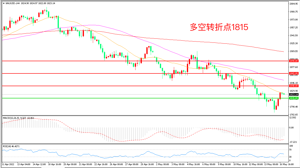 交易策略:在1815.00之下看跌,目标1790.00 1765.00