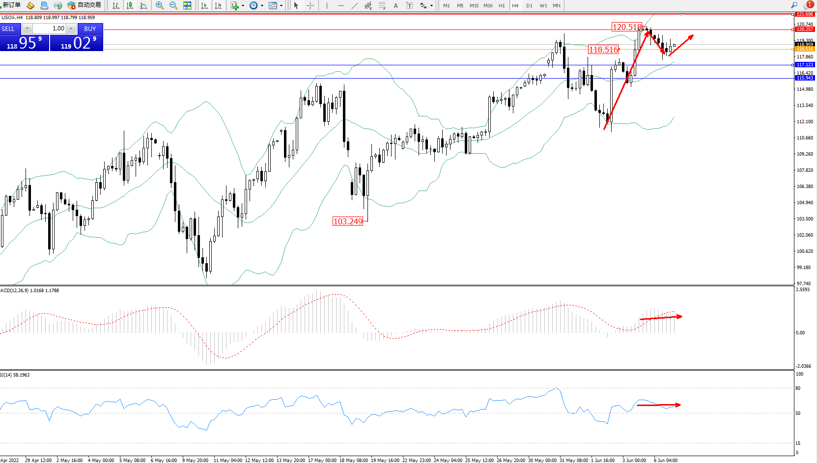 原油维持120.281附近震荡,国际油价上涨,因沙特阿拉伯提高7月份实物售价。这表明,即使在石油输出国组织及其盟友(OPEC+)同意未来两个月扩大增产后,市场供需形势依然紧张。