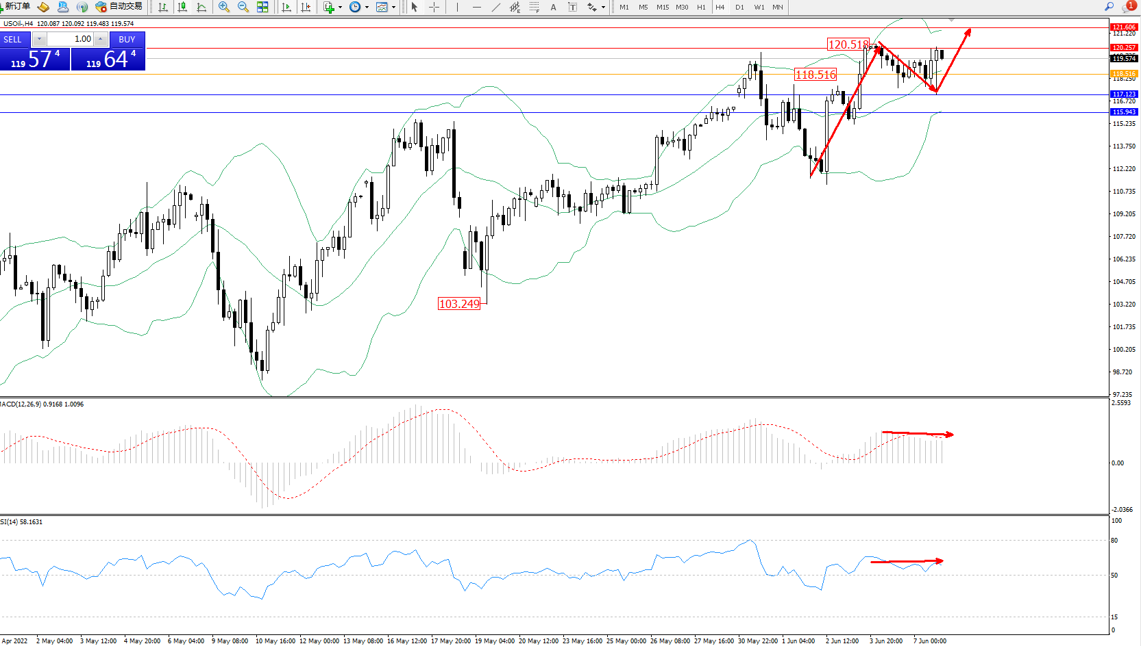 原油维持119.574附近震荡,美国飓风季即将开始,根据过去的经验,墨西哥湾沿岸将面临较大风险。而对于提供美国近半炼油能力的墨西哥湾来说,飓风还可能进一步加剧美国燃料供应的短缺,引发新一轮的价格疯涨。