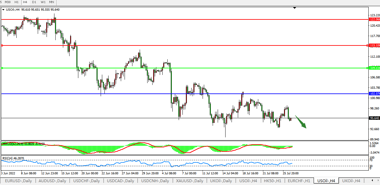 美国原油USOil 4小时图