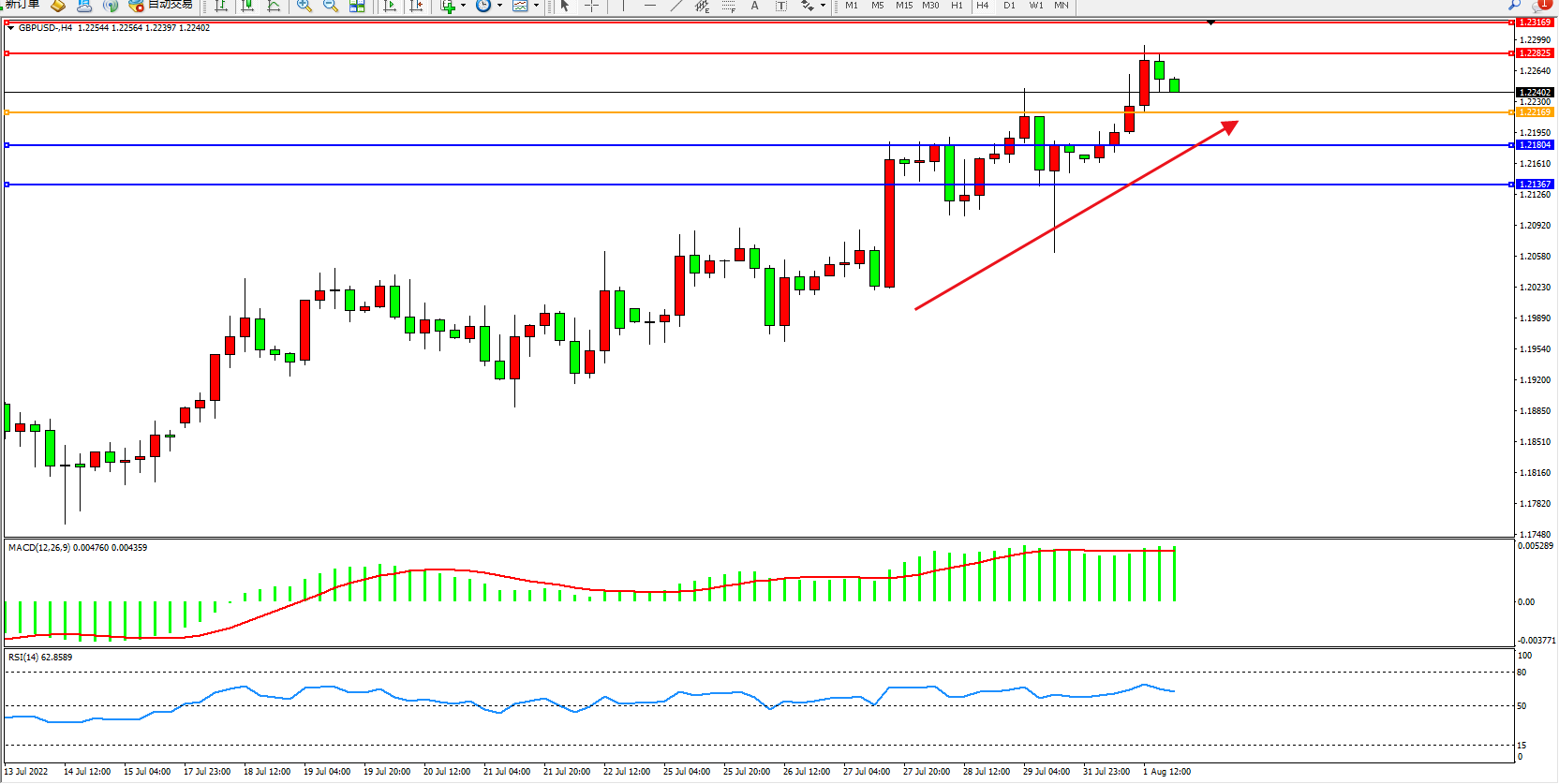 交易策略:1.22169上方看涨,目标1.22825、1.23169