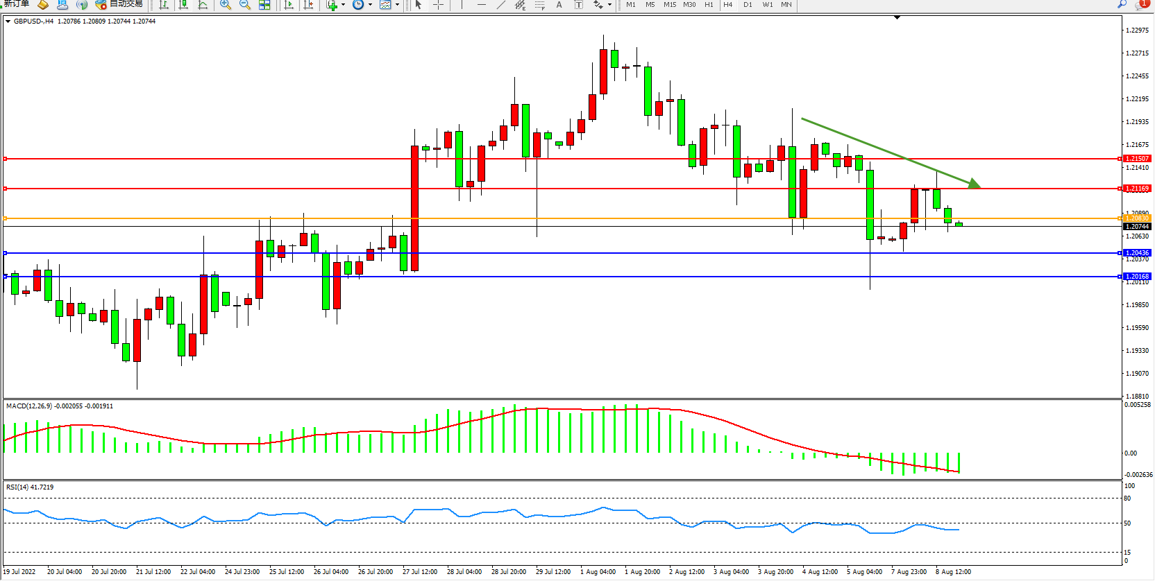 英镑美元GBPUSD ——4小时K线图显示: