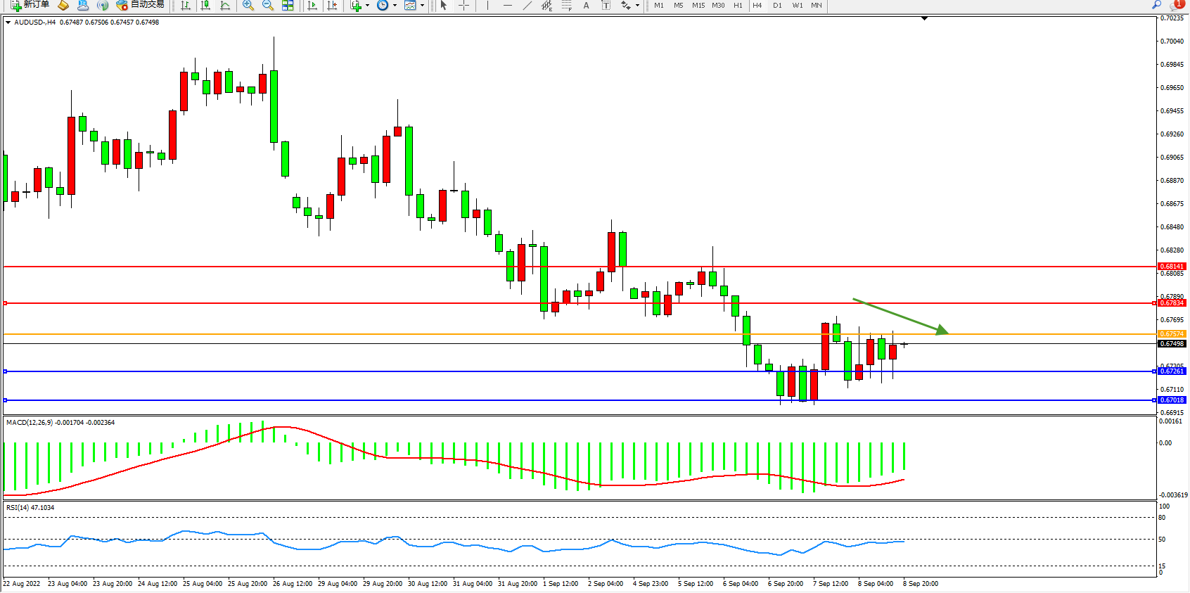 备选策略:0.67574上方看涨,目标0.67834、0.68141