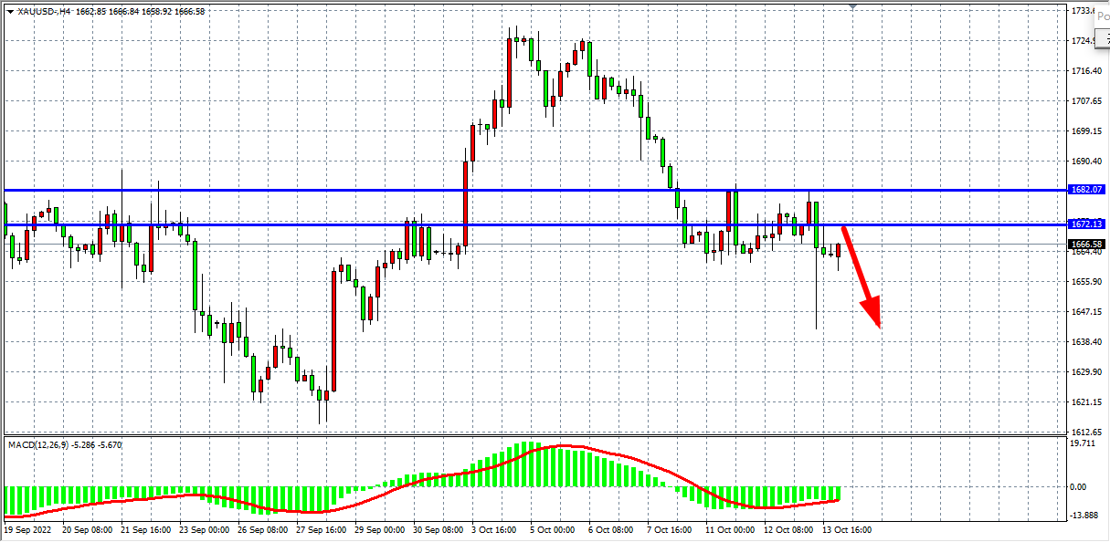 交易策略:在1672.00  之下看跌,目标1648.00            1630.00