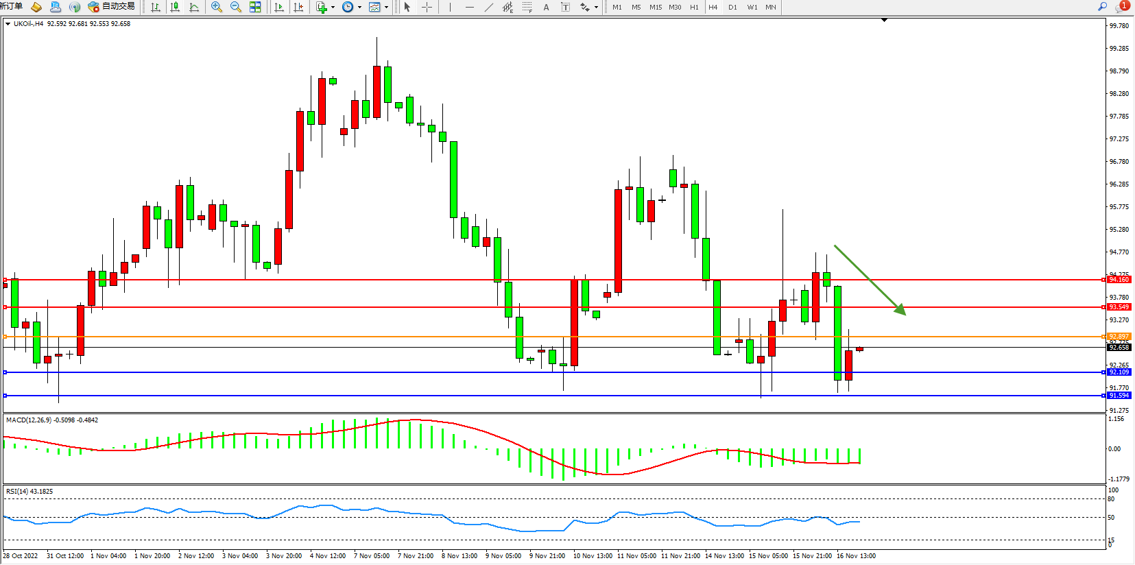 4小时图看:空头动力低位急速下行,低位再度震荡,市场波幅空间收窄下行,短期或再度向下移动,MACD指标处于0轴线下侧徘徊,RSI指标处于50均衡线下侧弱势整理;