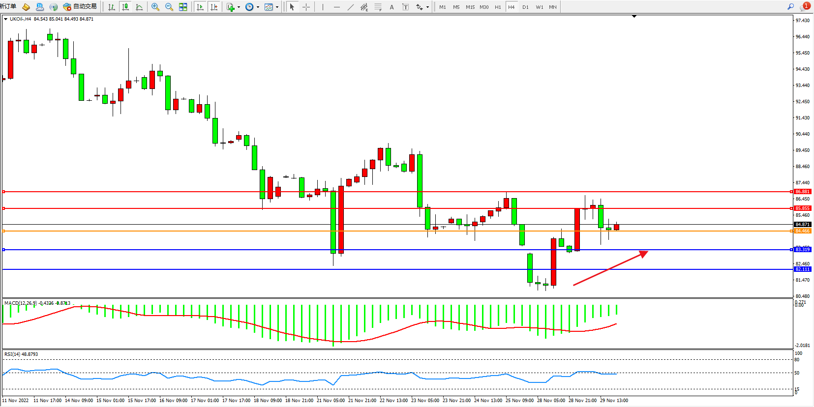 布油维持84.871附近震荡,全球经济放缓和新的封锁措施对石油需求的影响,暂时超过了对供应的担忧。欧盟禁止购买俄罗斯海运石油的禁令将于12月5日生效,预计欧盟还将宣布对俄罗斯原油的价格上限。