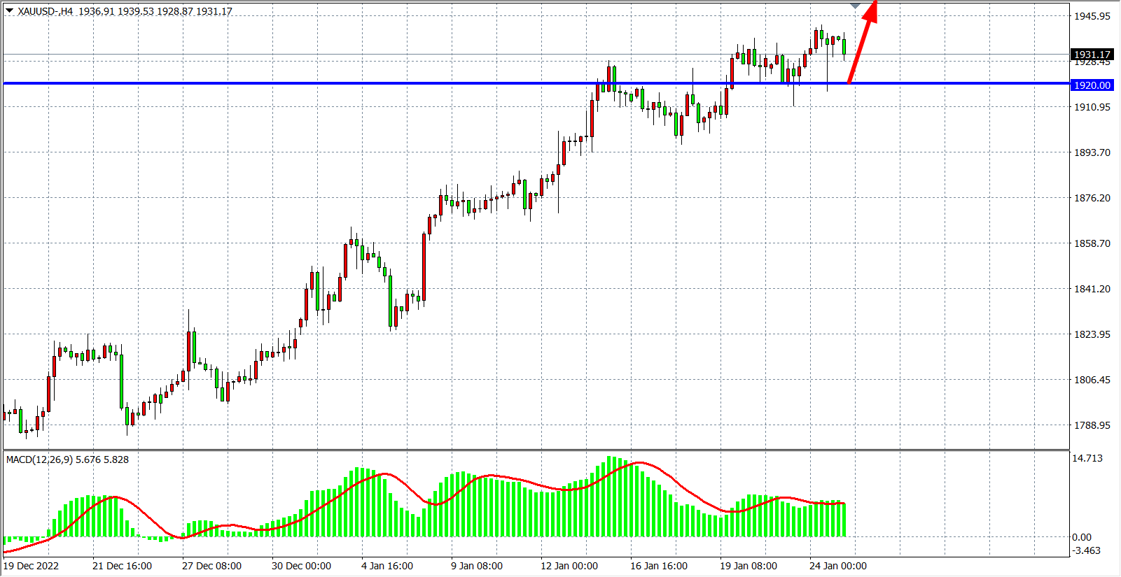 交易策略:在1920.00 之上看涨,目标1930.00         1950.00