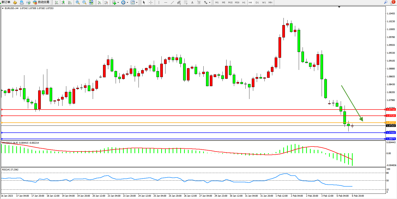 交易策略:1.07337下方看跌,目标1.07050、1.06874
