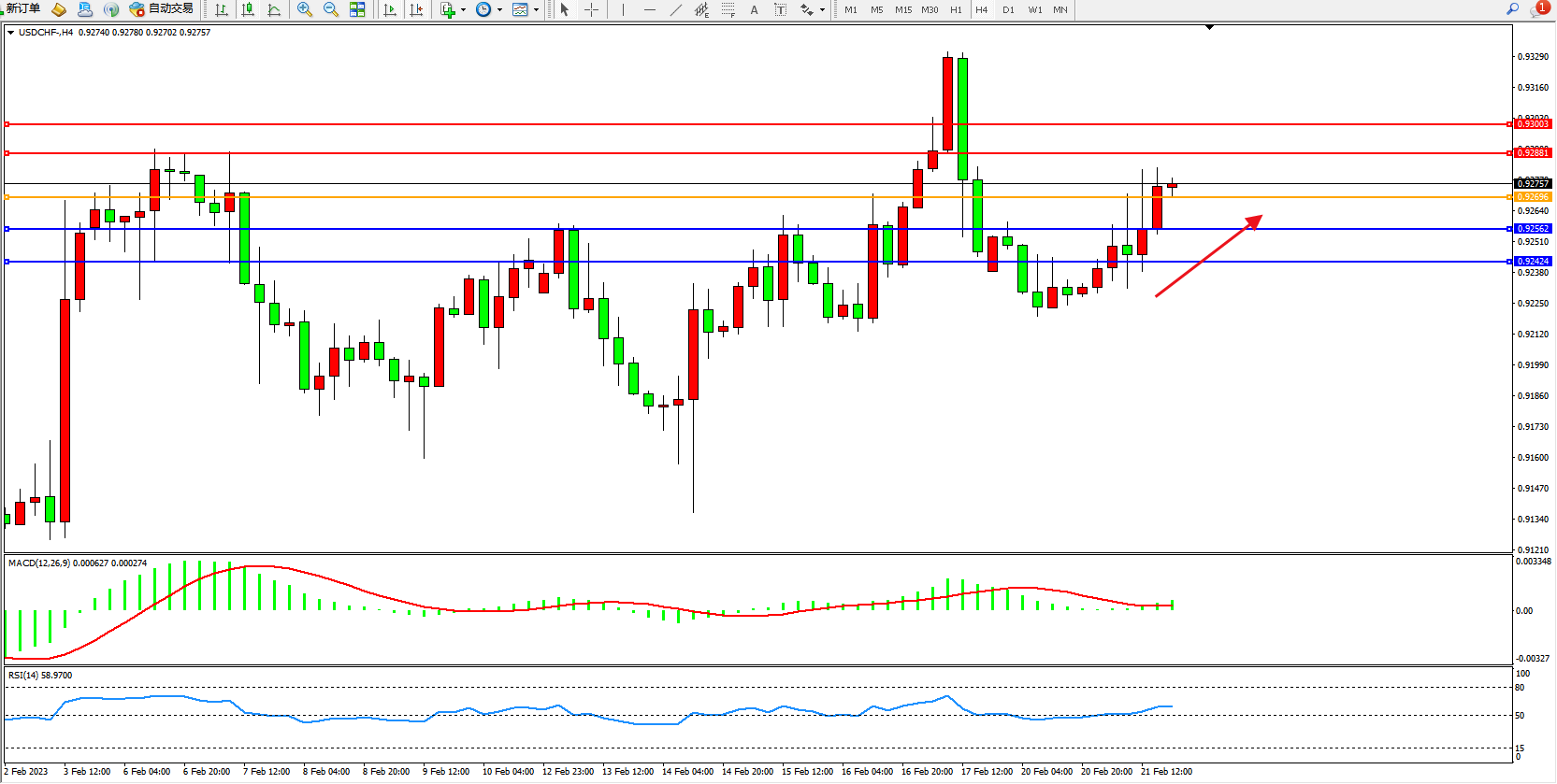 备选策略:0.92696下方看跌,目标0.92881、0.93003
