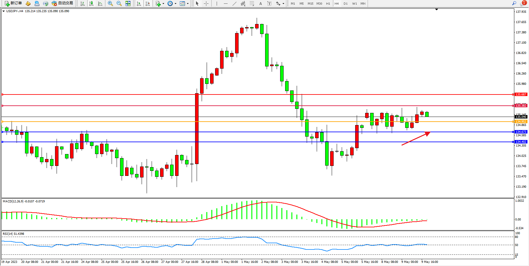 支撑位:134.673 134.402
