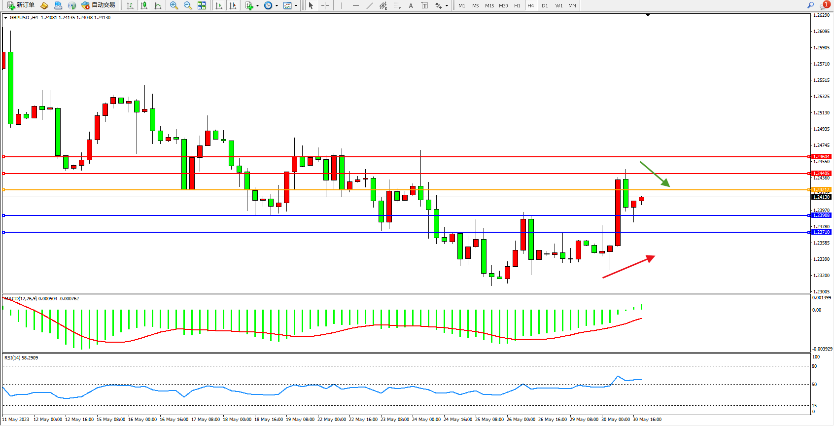 阻力位:1.24405  1.24604