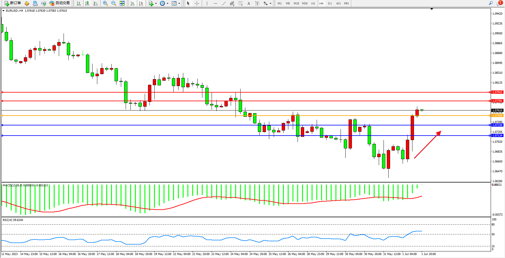 欧元兑美元维持1.07610附近震荡,欧盟统计局的数据,第一季度制造业产出已经下降。从PMI调查结果来看,第二季度也可能出现负面迹象,尤其是表现不佳的法国。劳动力市场的下滑尚未开始。