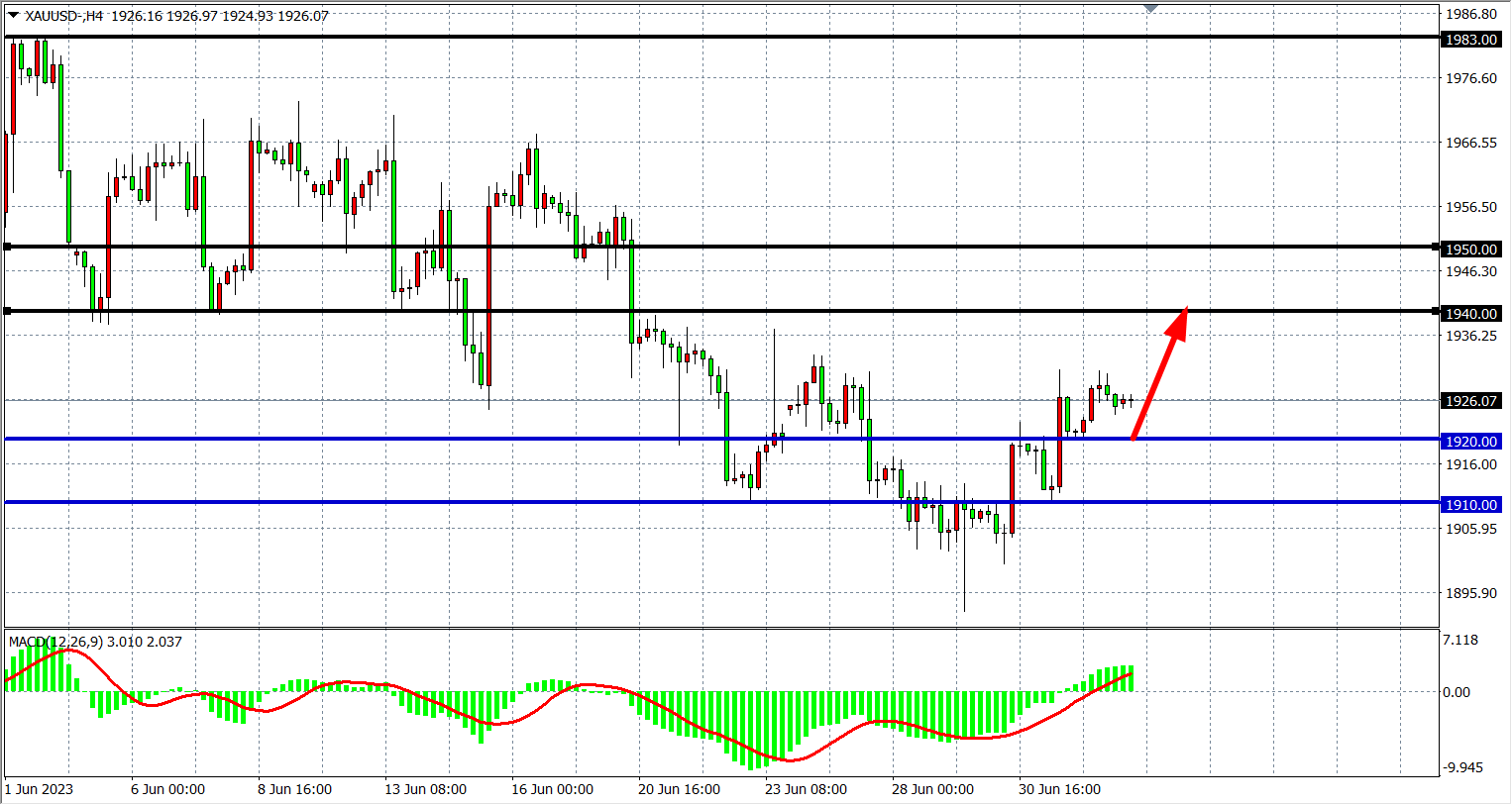4小时图看,黄金在1930附近徘徊,MACD量能在零轴上,趋势延续反弹,支撑关注1910-1900,阻力关注1940-1950。