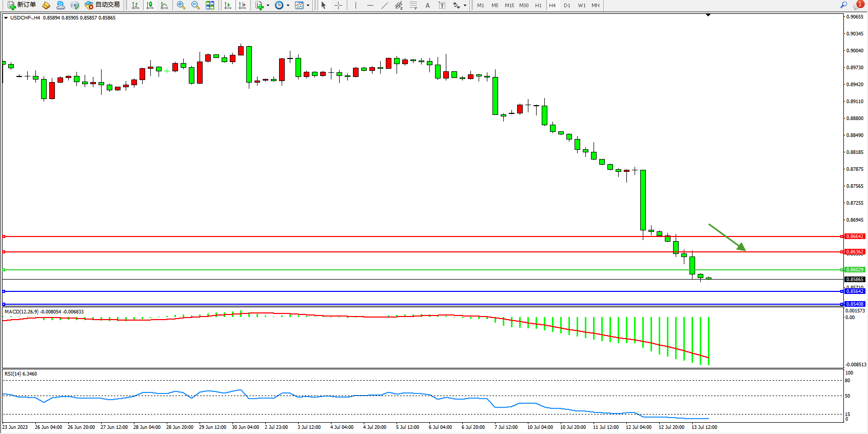 交易策略:0.86029下方看跌,目标0.85642 0.85408