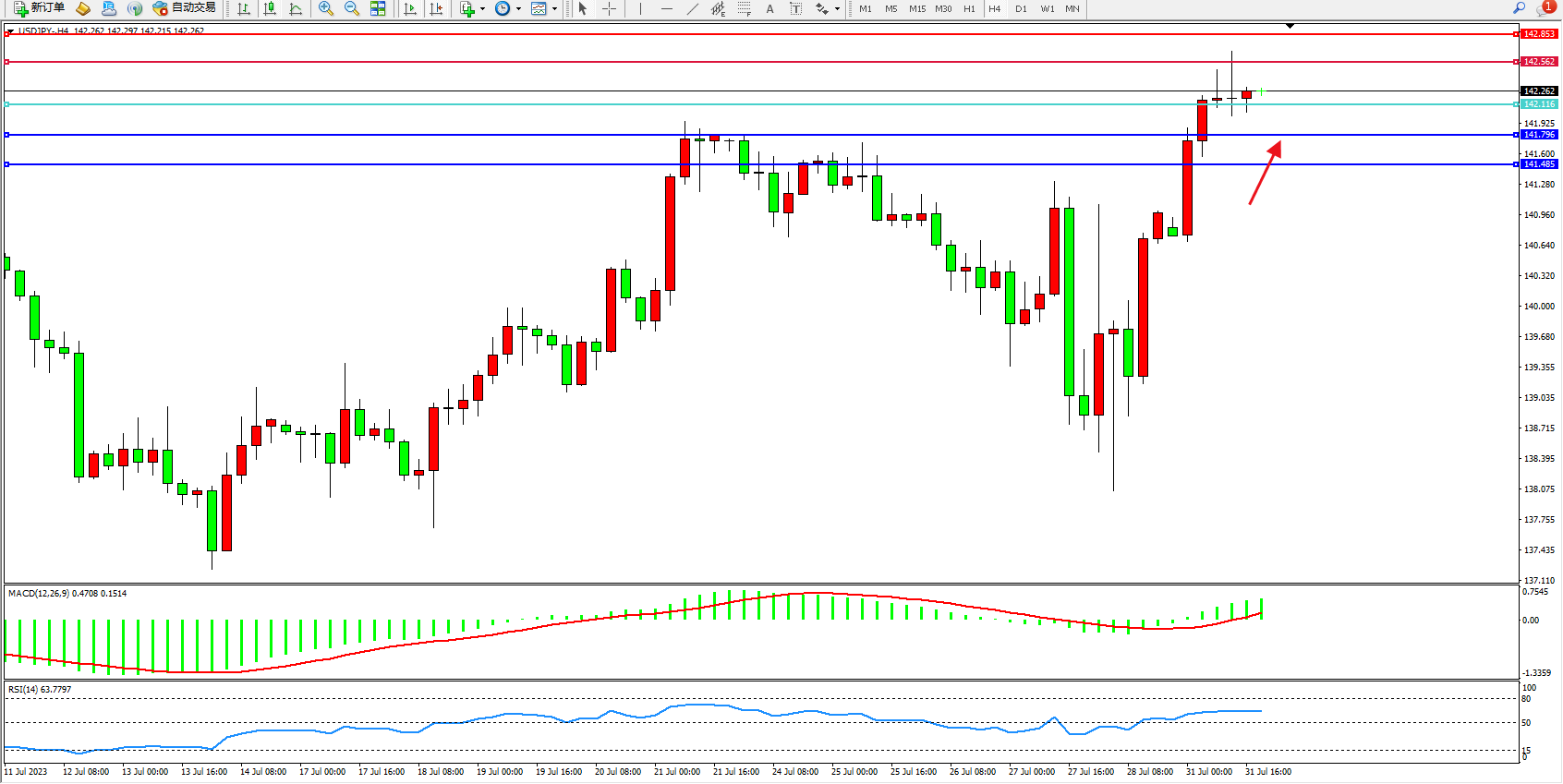 美元兑日圆维持142..262附近震荡,日圆疲软可能最终迫使日本央行改变政策。目前日圆是唯一受负利率影响的货币。日圆是最终的融资货币,目前的环境有利于利差交易。