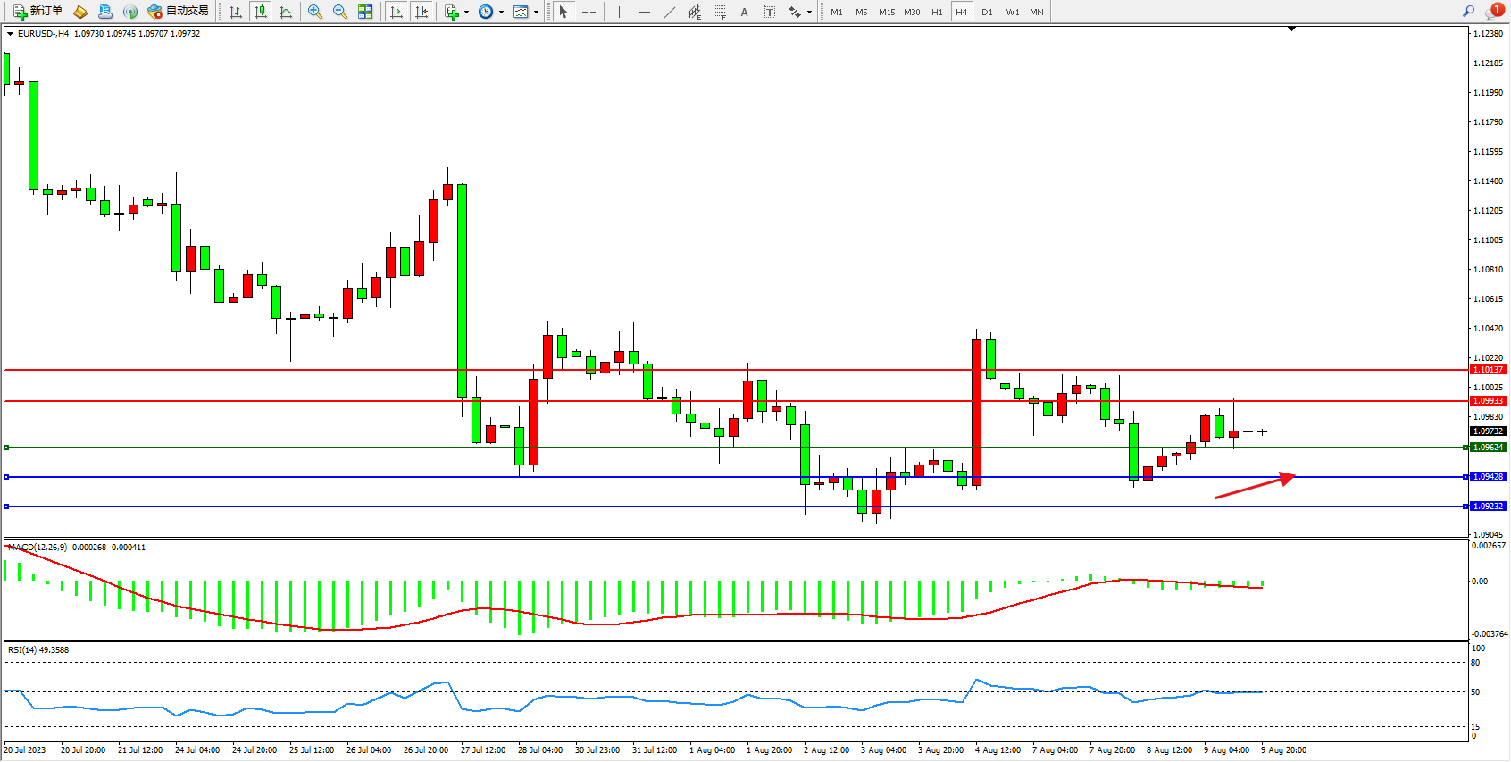 交易策略:1.09624上方看涨,目标1.09933 1.10137