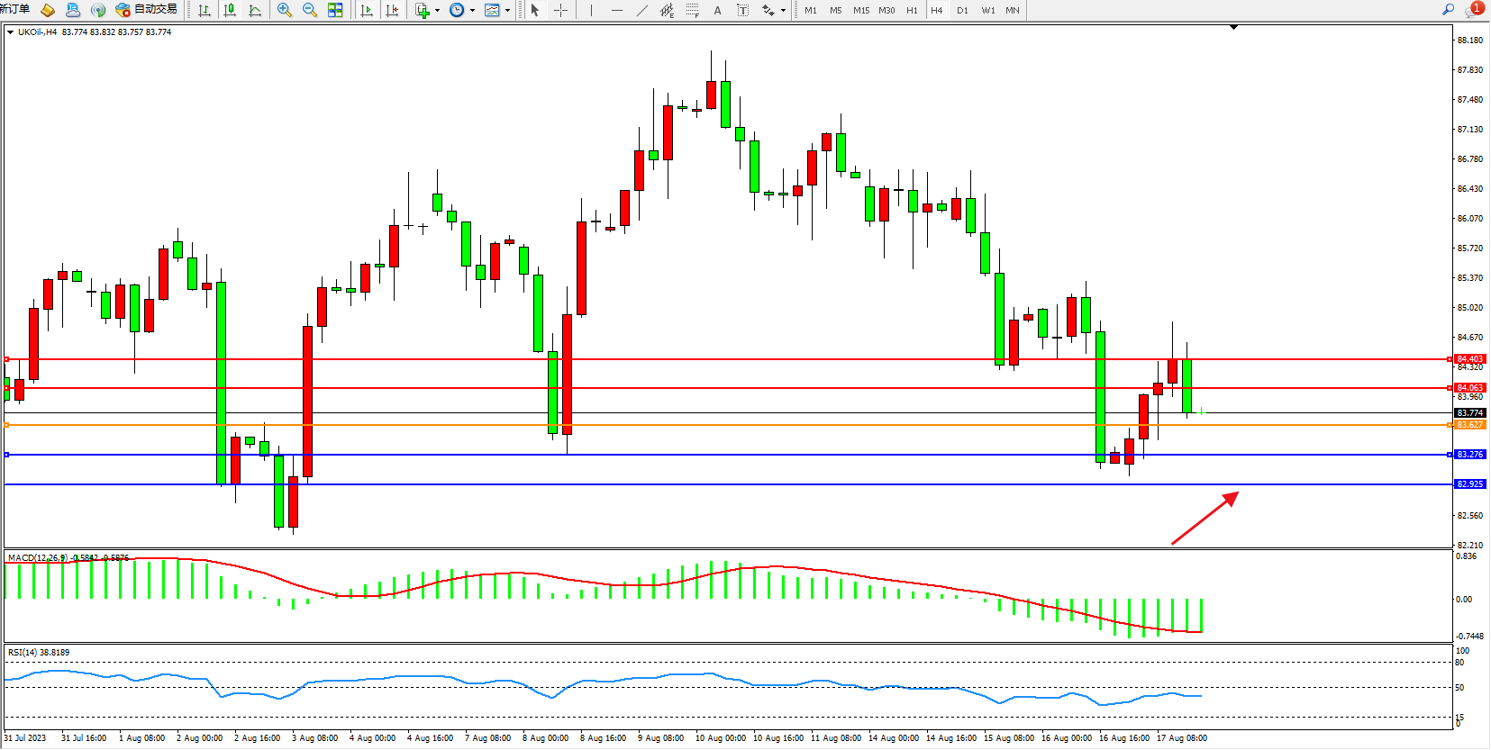 布油维持83.774附近震荡,沙特7月开始单方面自愿减产100万桶/天,“以支持石油市场的稳定”,7月、8月和9月的石油产量平均约为900万桶/天。单方面降息最初定于7月持续,但先后两次延长,一次延长至8月,后来又延长至9月。
