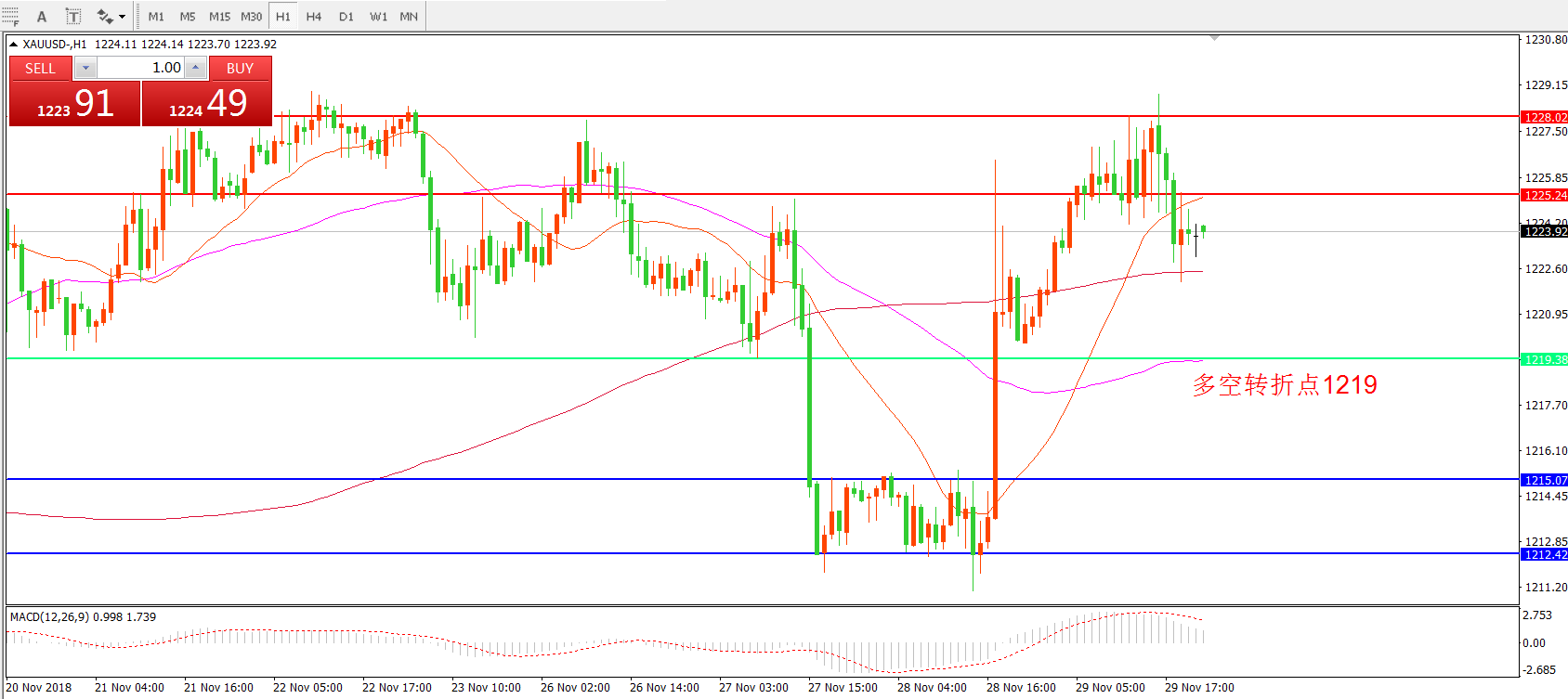 交易策略:1219之上看涨,目标1225.02  1228.24