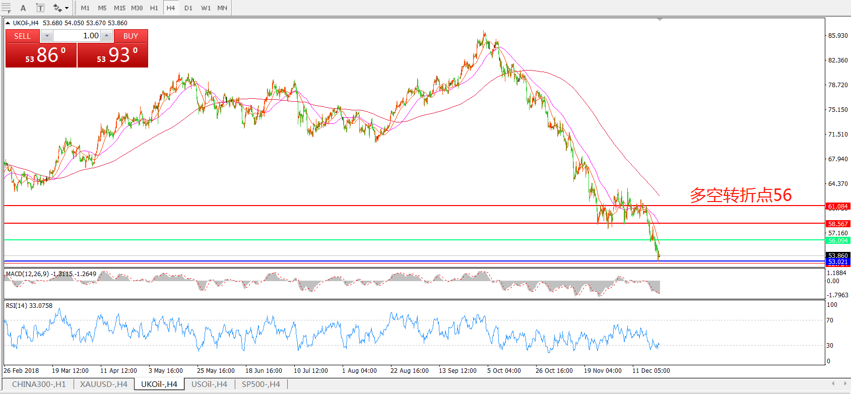 交易策略:在56.00之下看跌,目标53.00 50.00
