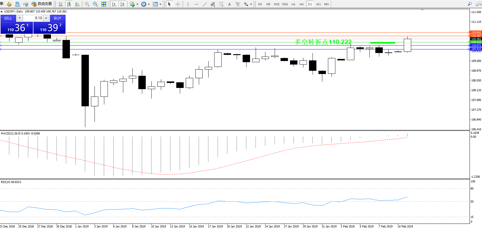 美/日站上110关口,创六周新高!受益于美元升值,但多头恐仍受制于一大牵绊。美元兑人民币离岸价升破6.80关口,为1月24日以来首现,助力美元兑纽元和澳元收复部分跌幅。此外美债收益率的上行也支撑美元,截至发稿,美国10年期国债收益率上涨1.8个基点至2.652%。本周中美贸易谈判将持续左右风险资产,当前市场仍对此持乐观预期,欧洲股市及美股期货均上行。美国财长和贸易代表率领的庞大团队周一将来华继续谈判,需密切关注。