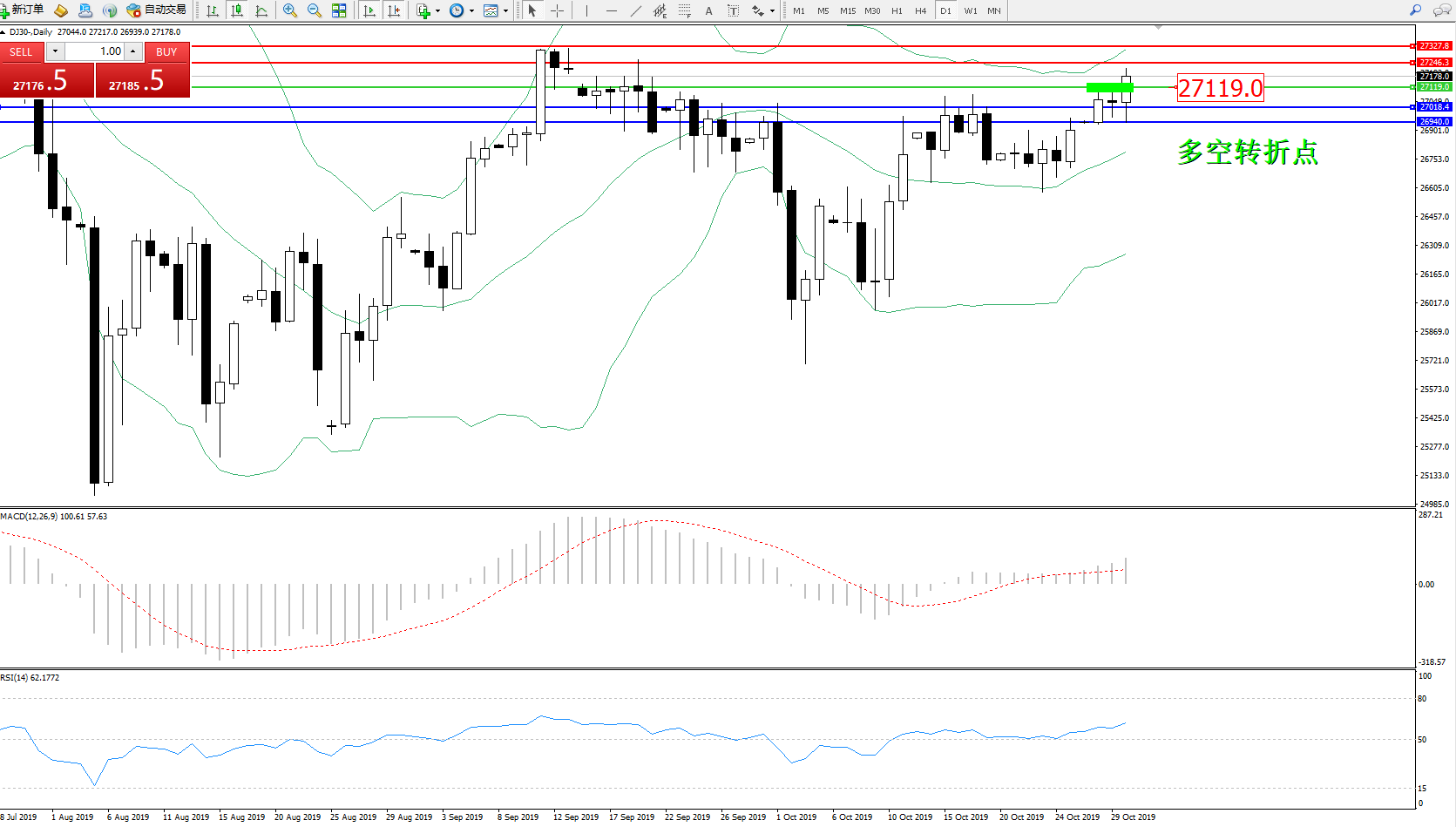道琼斯指数1030日(周三)收盘上涨115.30点,涨幅0.43%,报27186.69点。北京时间周四(1031)凌晨02:00,美联储宣布降息25个基点至1.5%-1.75%,为年内第三次降息,符合市场预期;在会后的政策声明中,美联储删除了“采取适当措施”的承诺。美联储称,劳动力市场依然强劲,经济活动以温和的速度增长。企业固定投资和出口依然疲软。近几个月平均就业增长稳健,失业率仍然在低位。家庭支出一直以强劲的速度增长。以12个月为基础的指标看,整体通胀率和扣除食品及能源的通胀率都低于2%。基于市场的通胀补偿指标依然在低位;基于调查的较长期通胀预期指标几乎没有变化。