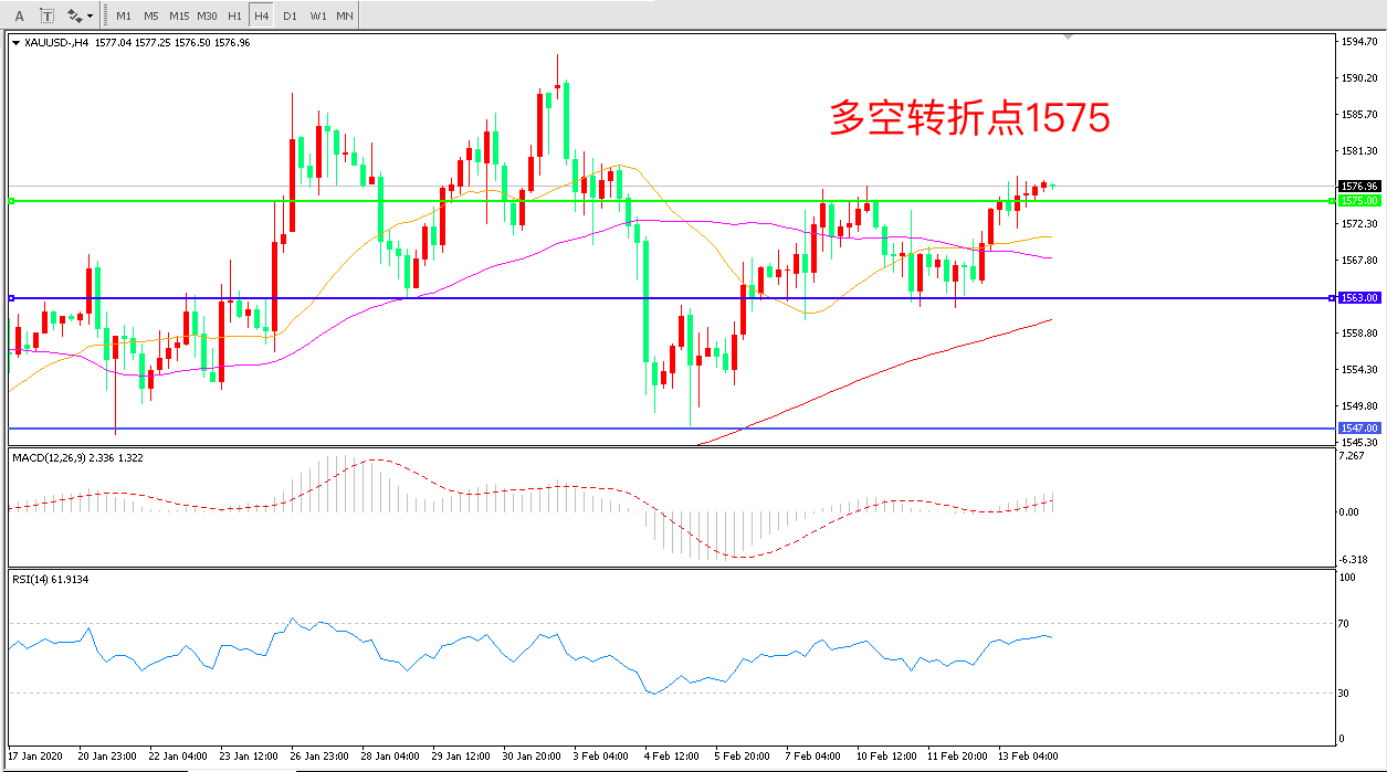 备选策略:在1575.00之下看跌,目标1563.00 1547.00