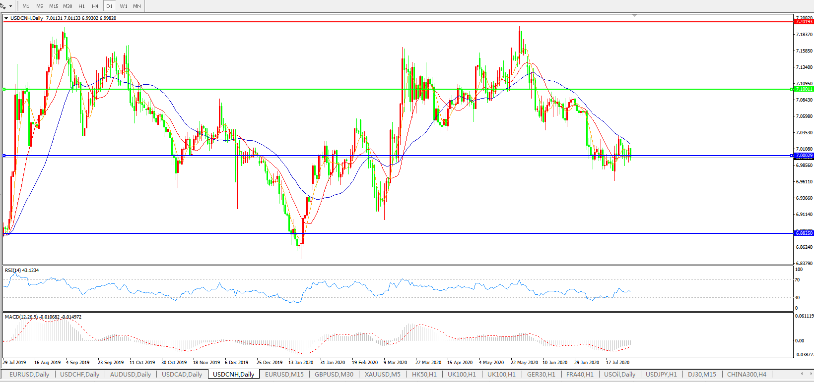 美元兑人民币USDCNH    日线图: