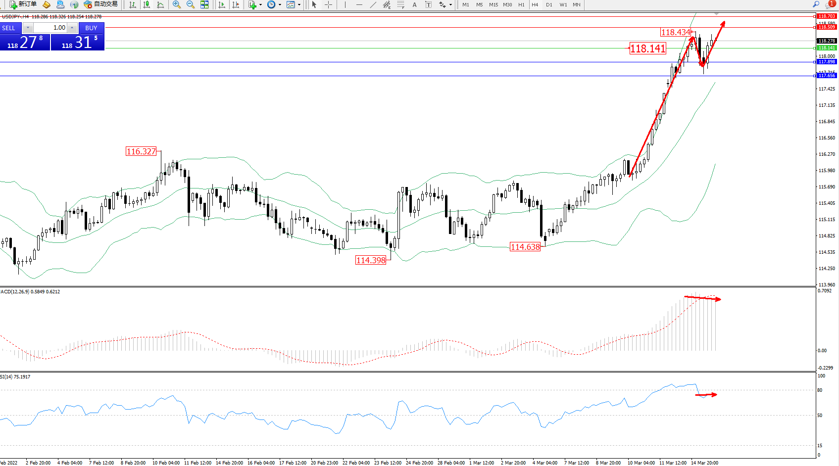 美元兑日圆维持118.278附近震荡,日本执政党资深议员:必须拿出一揽子措施来应对乌克兰危机带来的经济影响。必须考虑到日本经济可能因通货膨胀加剧、劳动力、商品和供应短缺而停滞、放缓的风险。鉴于通胀上升,日本可能会出现滞胀。美国、欧洲央行正在开始加息,但日本央行不能这样做,这可能会影响外汇走势。
