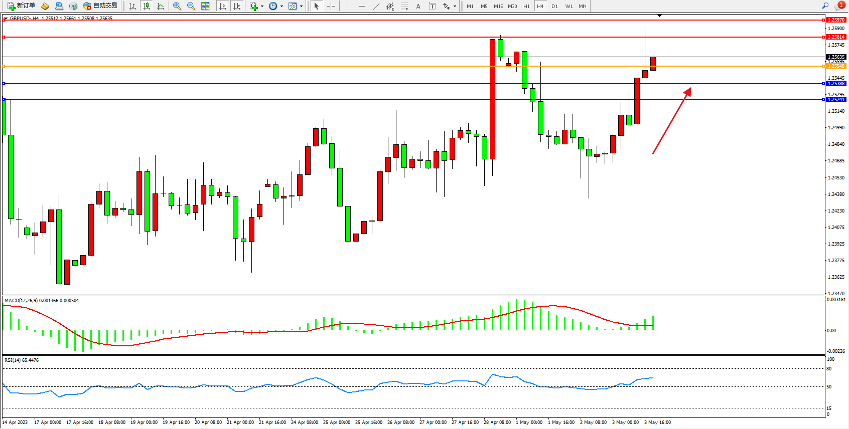 英镑美元GBPUSD ——4小时K线图显示: